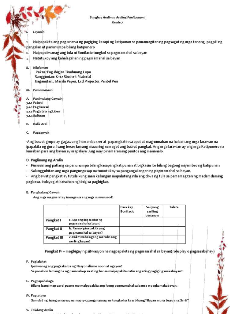 Banghay Aralin Sa Araling Panlipunan I Nasyonalismo