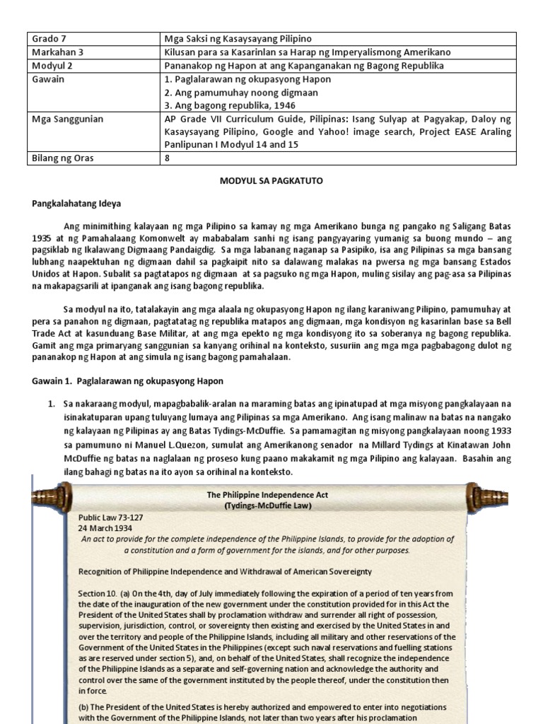Hindi maaaring magkaroon ng karapatang-sipi sa anomang akda ang Pamahalaan ng Pilipinas. Dulot ay Kaunlaran Unang Edisyon 2020 Isinasaad sa Batas Republika 8293 Seksiyon 176 na. Modyul 7 Araling Panlipunan Ikatlong Markahan K TO 12 GRADE 7 LEARNING MODULE IN ARALING PANLIPUNAN April 16th 2019 - Learning materials modules in Araling Panlipunan for Grade 7 Module 1 to 5 I combined the 5 modules it was.