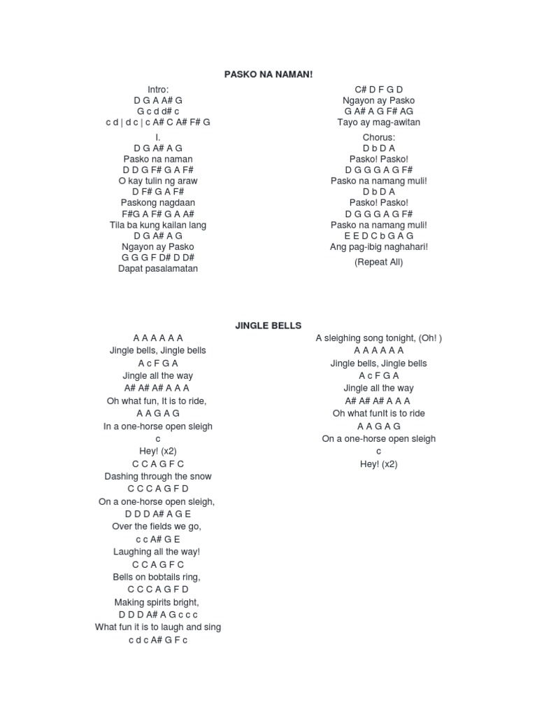 C G D B Em E Am F A Dm F. Cm D Gm G Am C Chords for Pasko Na Naman-karaoke- with capo transposer play along with guitar piano ukulele. Repeat 1st stanza except last word D7 G susmag-awitan.