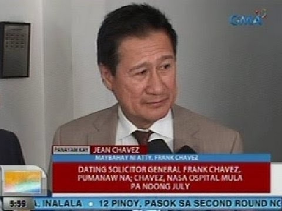 Ub Ex Solicitor General Frank Chavez Pumanaw Na Chavez Nasa Opsital Mula Pa Noong July Video Dailymotion