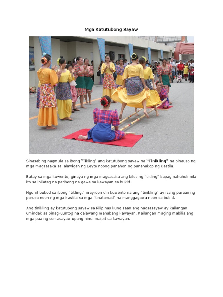 Ano ang ibig sabihin ng. Ang sayaw na ito ay napakaraming bersiyon subalit ang indak ng pagtataguan ay isang pangkaraniwan na sa kahit saan mang panig ng. Iniilagan ng mga nagsasayaw ang haligi na kawayan kagaya ng pagilag ng mga tikling sa magsasaka ng palay kapag hinuhuli sila.