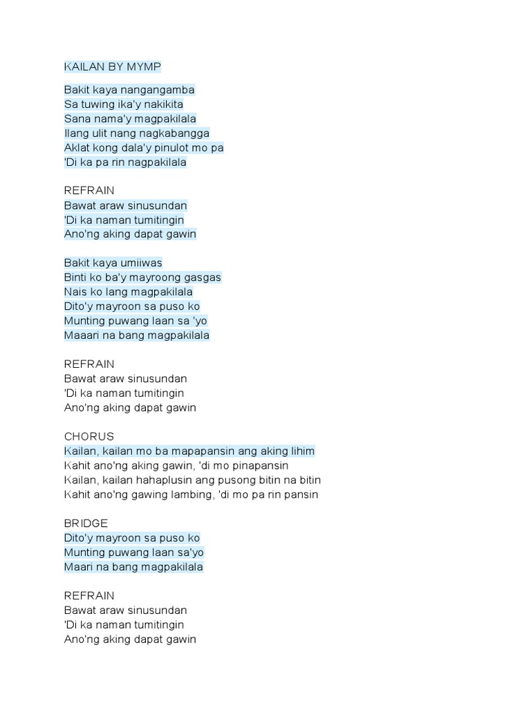 Kailan Lyrics From M Mymp Kailan Html