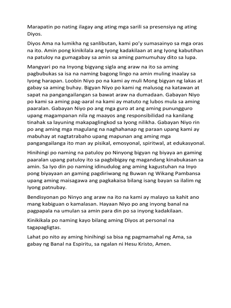 Halimbawa Ng Pambungad Na Panalangin