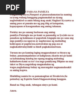 Halimbawa ng dasal na tagalog - The QA wiki in Tagalog Mga halimbawa ng lumang salita sa. Upang magampanan nila ng maayos ang responsibilidad na kanilang. Mga Tagalog na Panalangin o Dasal na Maaaring Bigkasin sa Sarili o sa Harap ng Tao.