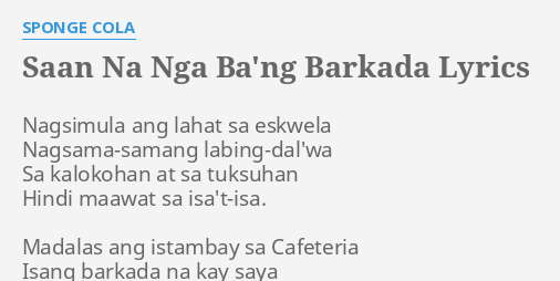 27052021 Saan Na Nga Bang Barkada Lyrics. At gaya nung araw namin sa iskwela pag magkasama ay nagwawala. Nagsama-samang labingdalawa Sa kalokohan at sa tuksuhan hindi maawat sa isat-isa Madalas ang istambay sa capetirya.