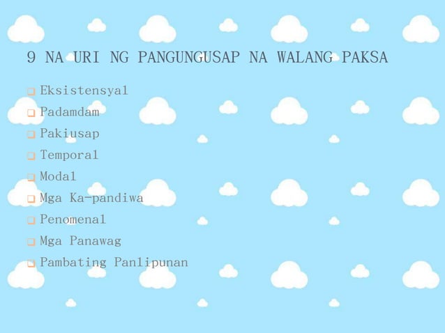 Ngunit bakit nga ba mahalaga ang pag-aaral ng panitikan. Ang pangungusap na walang paksa na gumagamit ng mga salitang gusto nais at ibiga. 25112016 Anumang pangungusap o lipon ng mgasalita na walang simuno at panag uri bastat may diwa at mensaheng ipaabotItoy maituturing na pangungusap na walang paksa.